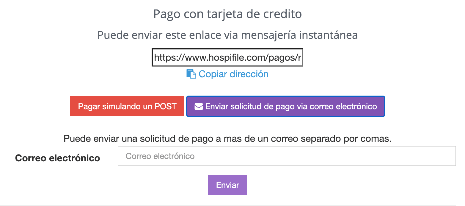 de la consulta, se le habilita una franja en la parte inferior desde la cual puede enviar una solicitud de pago por correo electrónico,